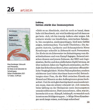 [...] „Ich darf Ihnen jetzt als Krönung verkünden: Das wunderbare Werk der Schauspielerin, Chansonsängerin, Lyrikerin und Sprachausbilderin Nives Kramberger: Sehnsucht nach Premantura, das die Adria und Berlin verbindet, ist da! – Es ist das Schönste und Originellste, was ich über Istrien gelesen habe [...]